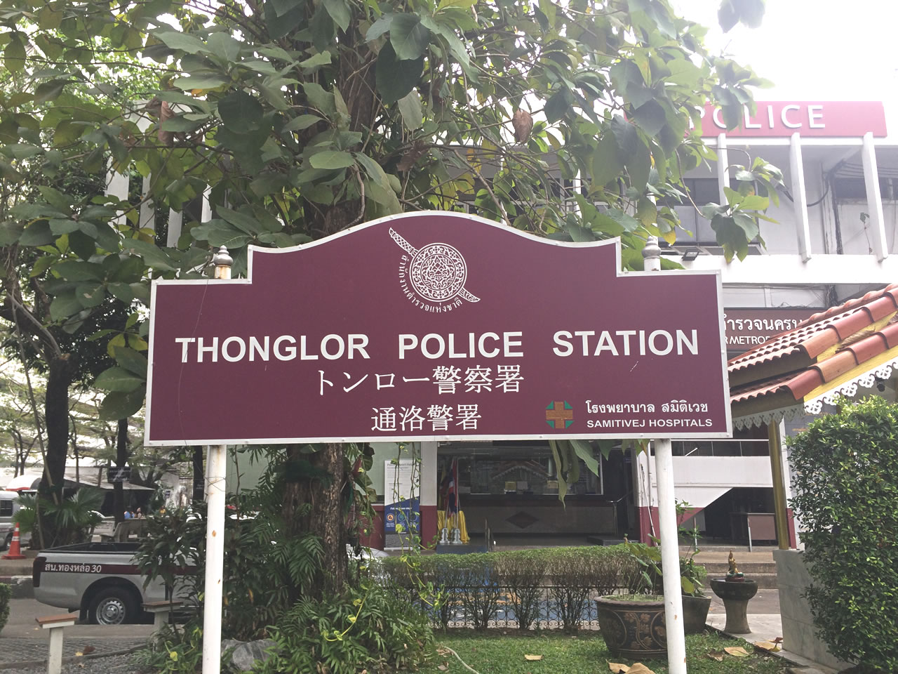 さて、バスとBTSを乗り継いてトンロー(Thong lo)駅へ。駅から警察署まで徒歩15分程。余程多くの観光客が来るのか「Police Report Helper」と書かれたプレートがあった。