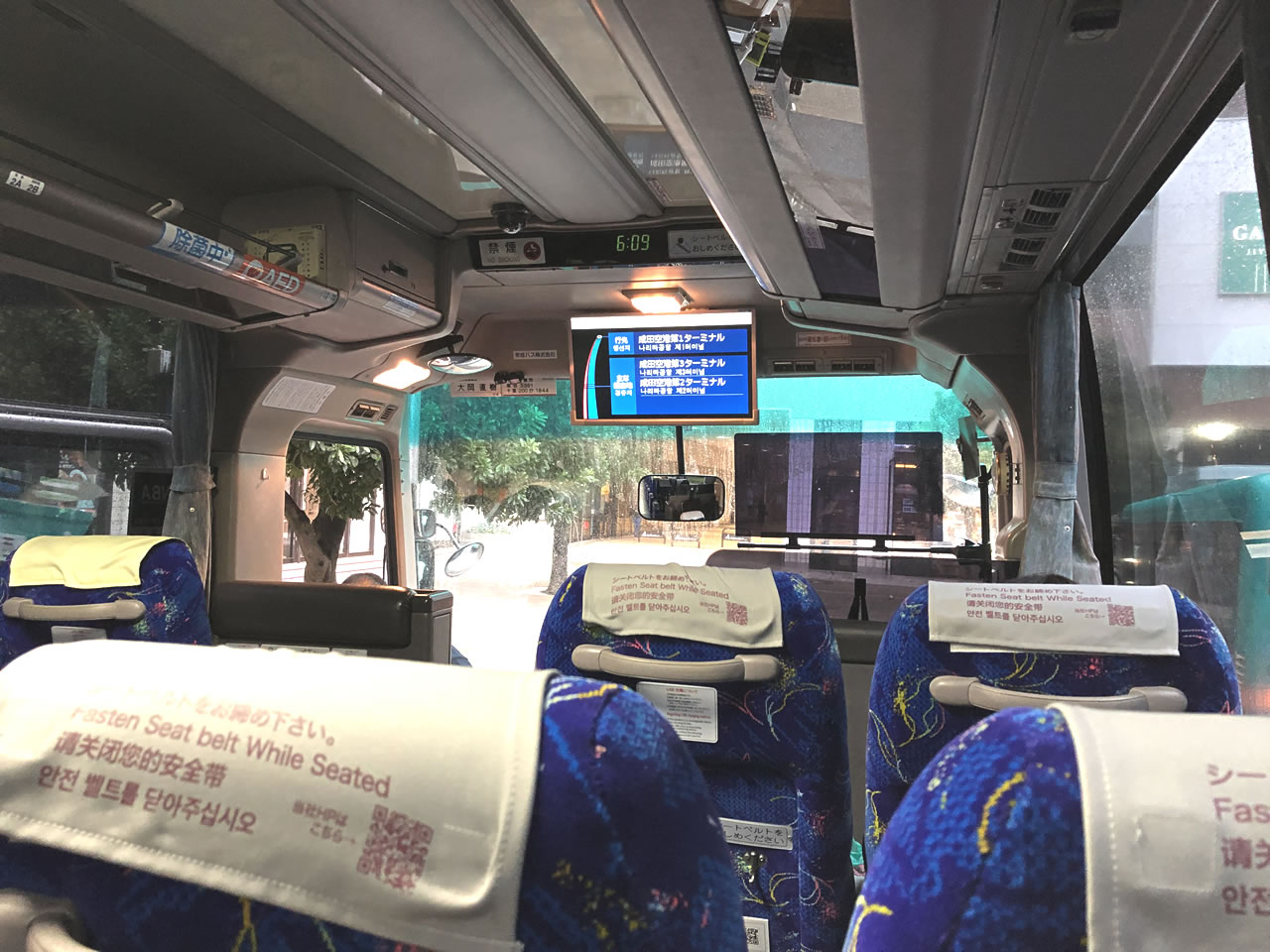 今回は初めてバスで成田へ向かう。06:10発、09:00の予定。お値段は3,100円。バスを選んだ理由は今日が平日で、しかもラッシュの時間とかち合うから。乗ったらずっと寝られて起きたら空港っていいね。トイレ、座席ごとにUSBポートが付いていて、更に二席確保できたのでとても快適。