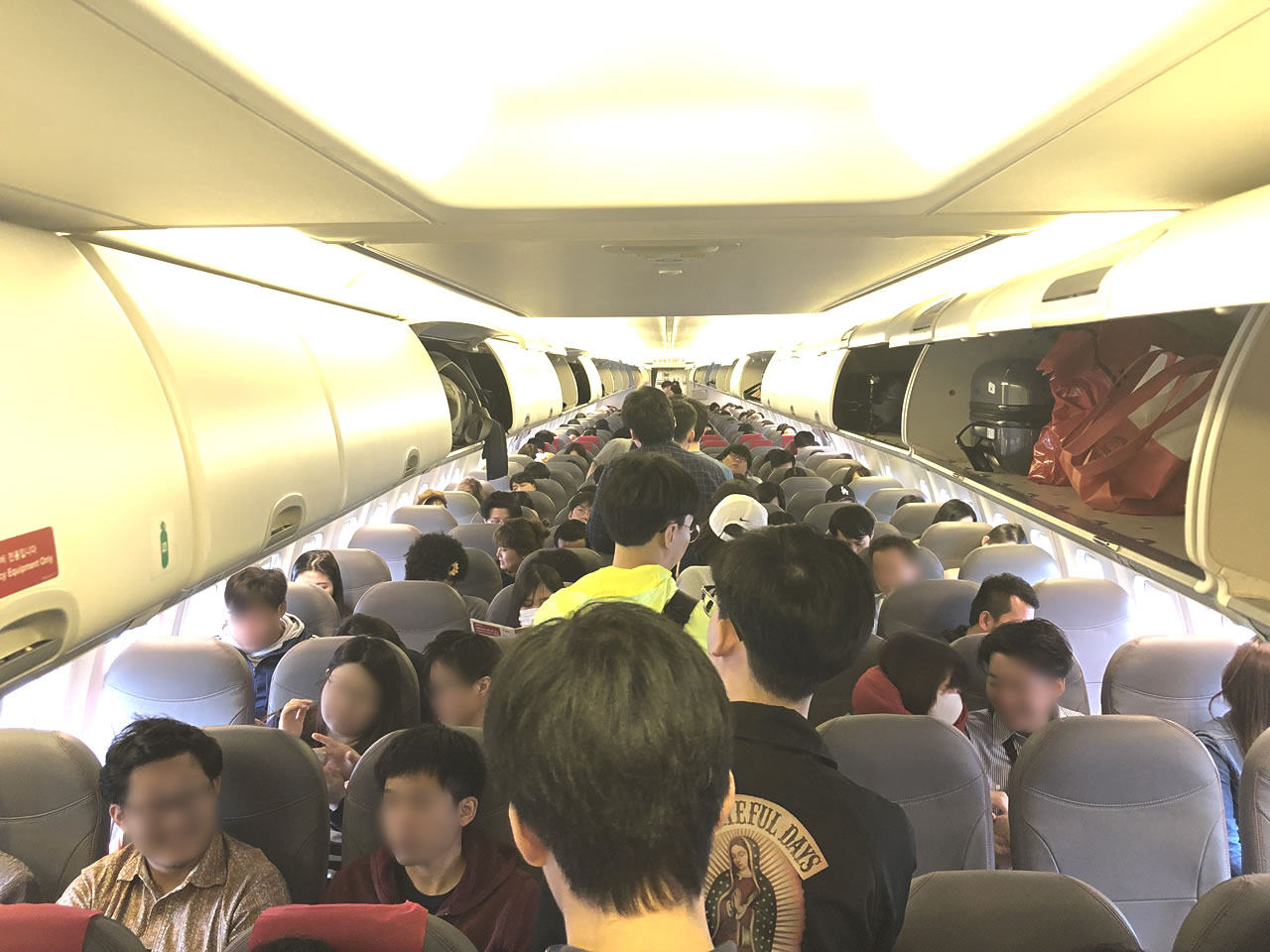 さてT’Way。LCCらしく座席にはモニター等余分な設備は一切無し。もちろんブランケットも枕も食事もドリンクも無し、というか別料金。座席も狭いのでもう寝るしか無いね。