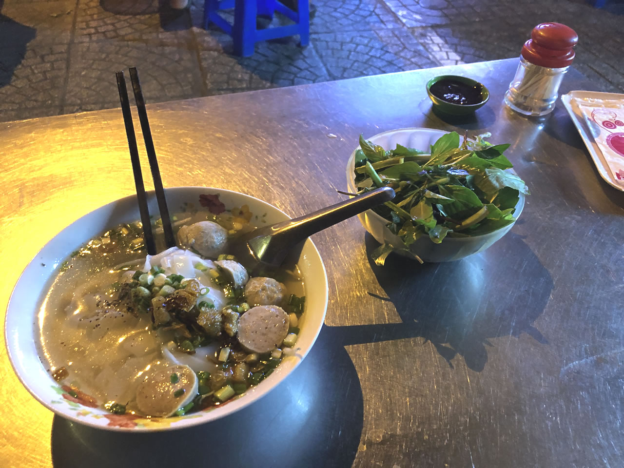 とりあえず貴重品をしまって、着替えをして食事をしに外へ。23:30を回っているというのに意外とお店も開いていた。屋台でフォーを注文。あっさり味だけどおいしかった。