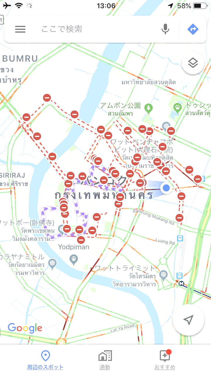 Google Mapを確認すると、かつて見た事がない程の進入禁止のマークが表示されている。