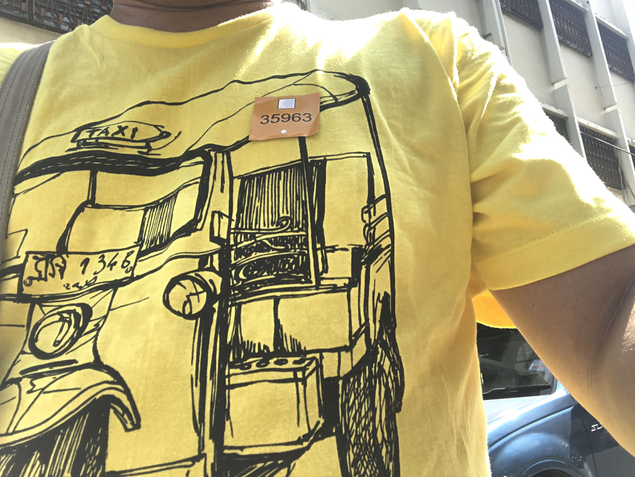 タイ人に混ざりながらパスポートの写真を撮られたり、それを係の人が手書きで台帳に書き写していたり、と大変。最終的に「35963」という番号が書かれたシールを胸に貼ってもらえた。