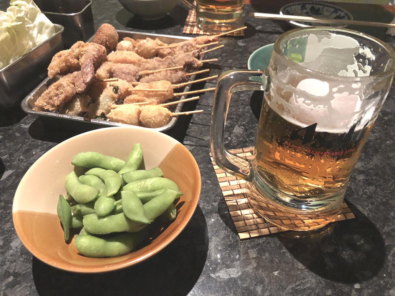 キクちゃんと20:30、シーロムで待ち合わせ。久しぶりのタニヤ。999バーツで串カツ食べ放題、飲み放題のお店で乾杯。仕事のできる店員さんに当たったので気持ちよくすこぶる飲んだ、食べた。