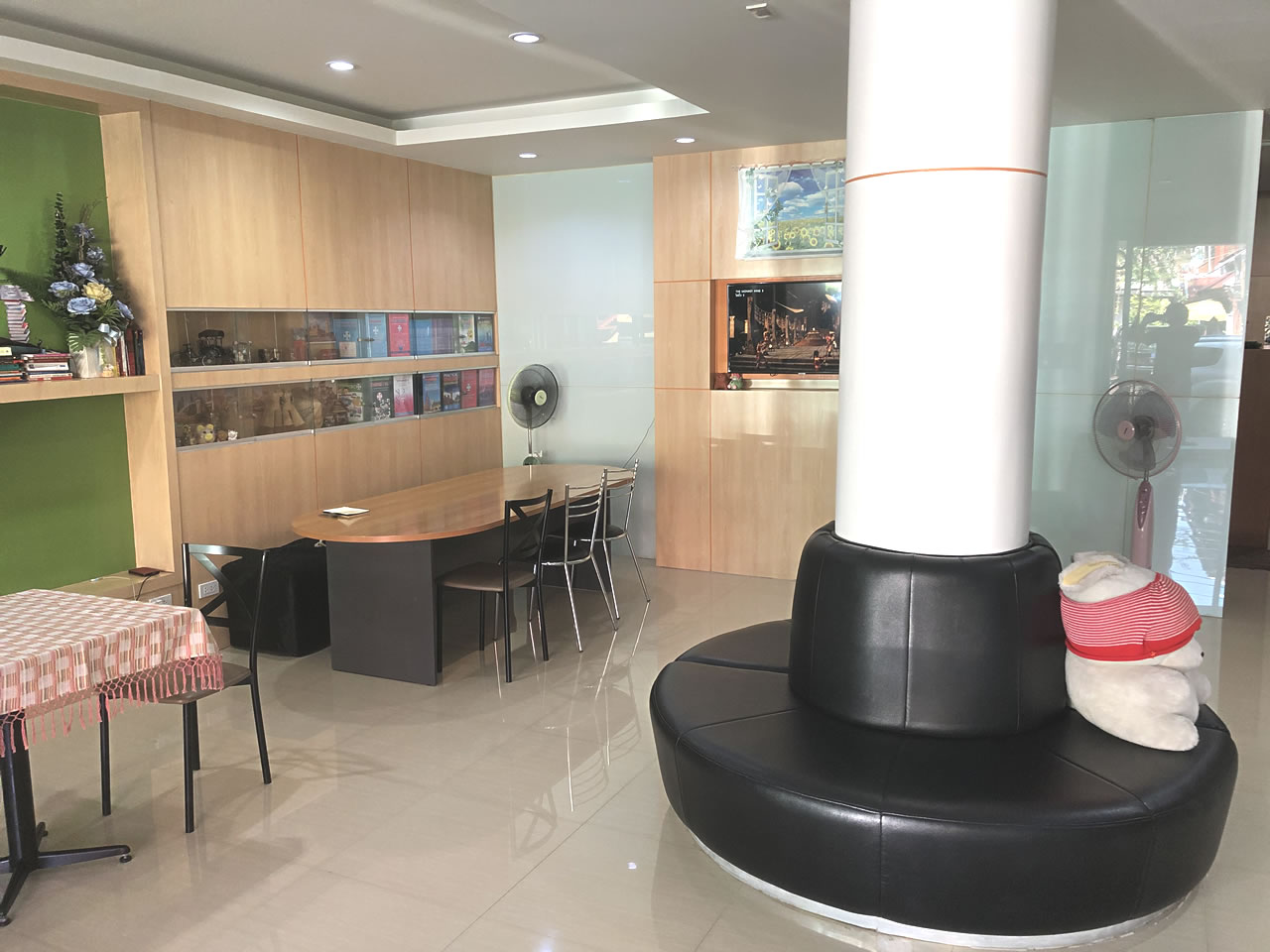 12:10頃、「準備ができたよ」と声を掛けられチェックイン。客室へ上がる階段の所で宿準備のスリッパに履き替えるスタイル。エレベーターは無いのでバンコクに続き、ここでも4階まで階段で上がる。階段の配置がシンメトリーで、なんだかだまし絵の中にいる様だった。