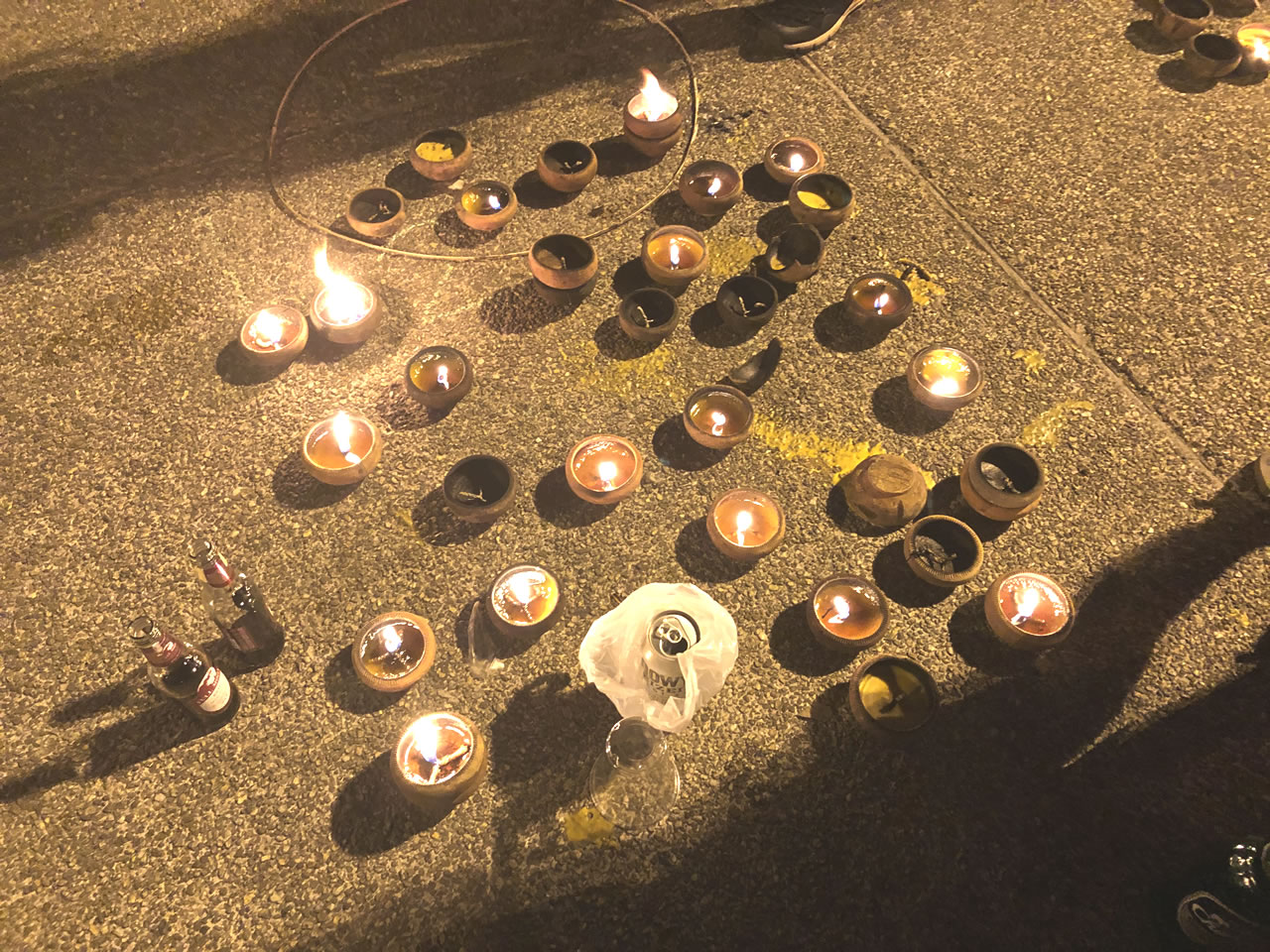 ちなみにコムローイなんだけど、中心部に固形燃料の様な物があり、そこに火をつける事で中の空気を温め、熱気球と同じ原理で飛んでいく仕組み。火をつける為の種火が小皿に入って無造作に道に置いてあるので歩くのにも注意が必要でした。