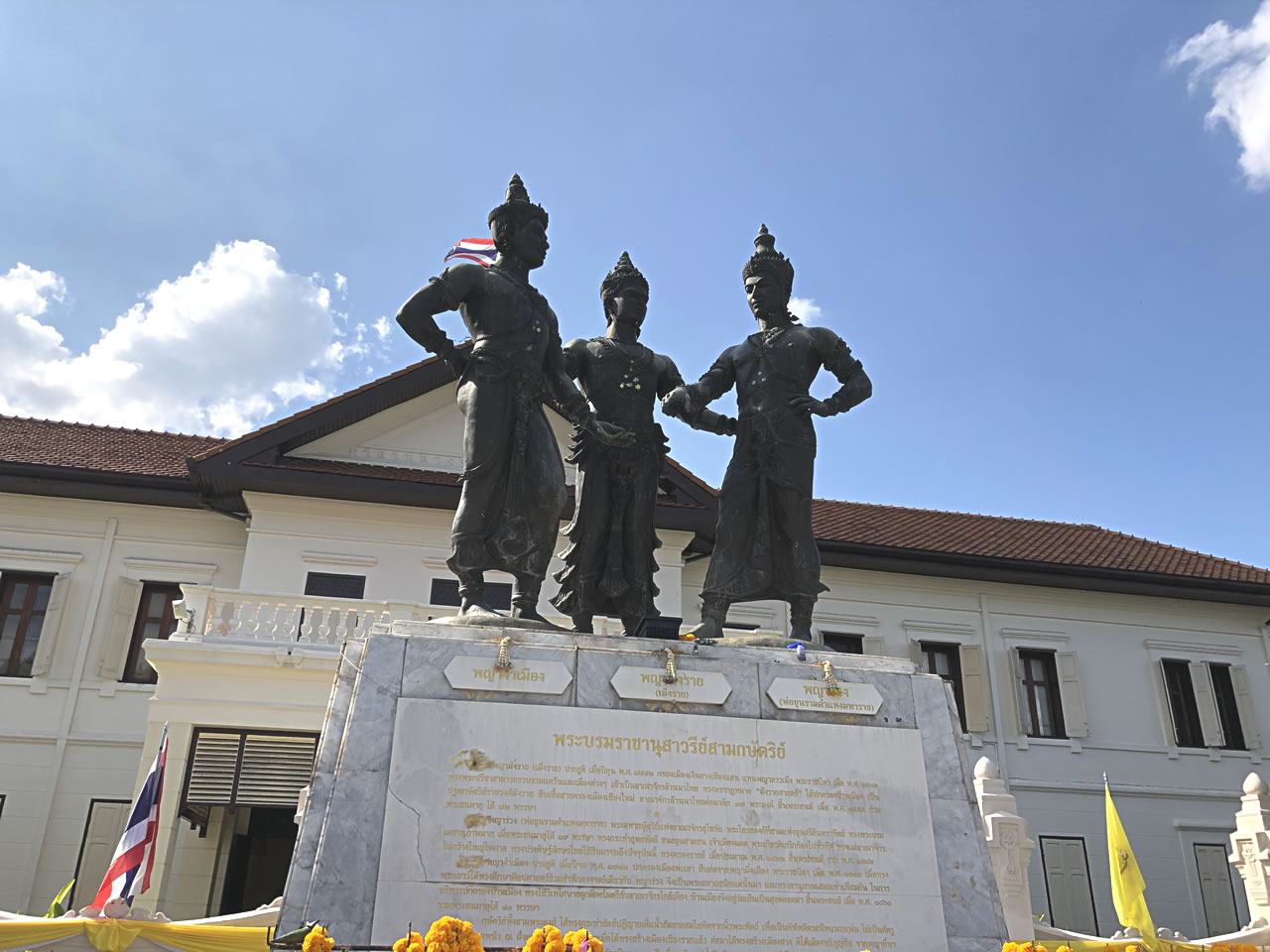 マンラーイ王、カムムアン王、ラームカムヘーン王と3人の王が集まる広場を通り、ワット・チェン・マンへ向かう。
