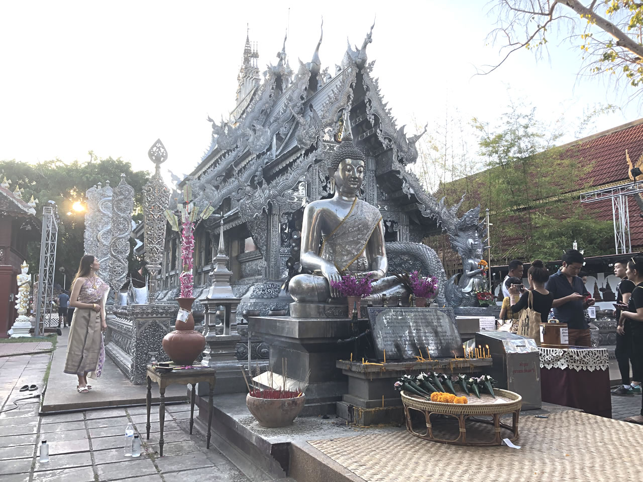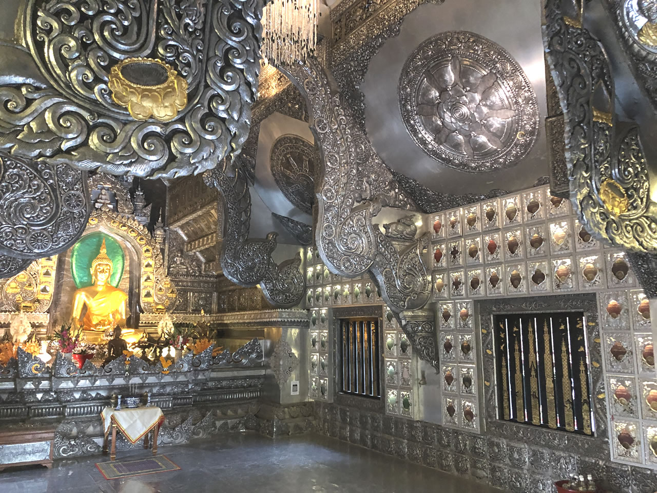 そしてお堂の中へ。これでもか、という銀細工に囲まれるが、仏像はさすがタイ、やっぱり金色なのね。ちなみにお堂は女人禁制との事でした。