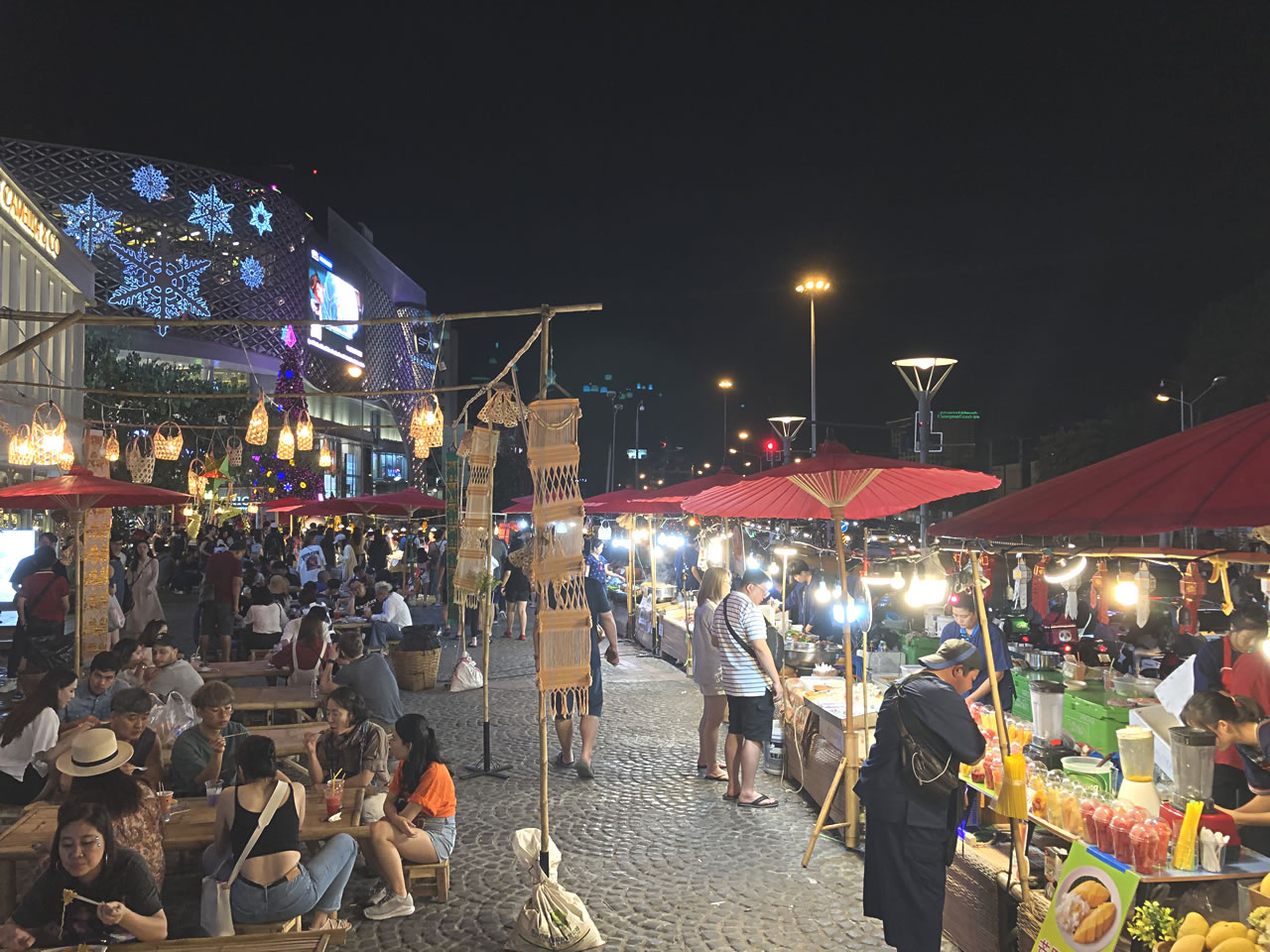 通りを半分ほど歩いた所でOne Nimmanという映えそうな装飾のビルを見つけたので入ってみる。ショップの他にフードコートもあり、多くのお客で賑わっていた。