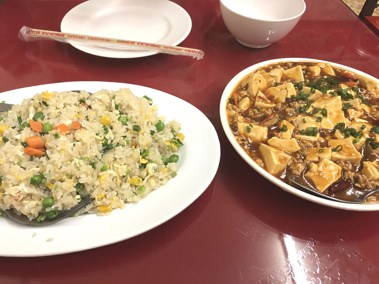 炒飯、麻婆豆腐、回鍋肉、小籠包等々定番メニューを注文。小籠包が少しパサパサで残念だったけど、その他料理は文句なしの美味しさだった。